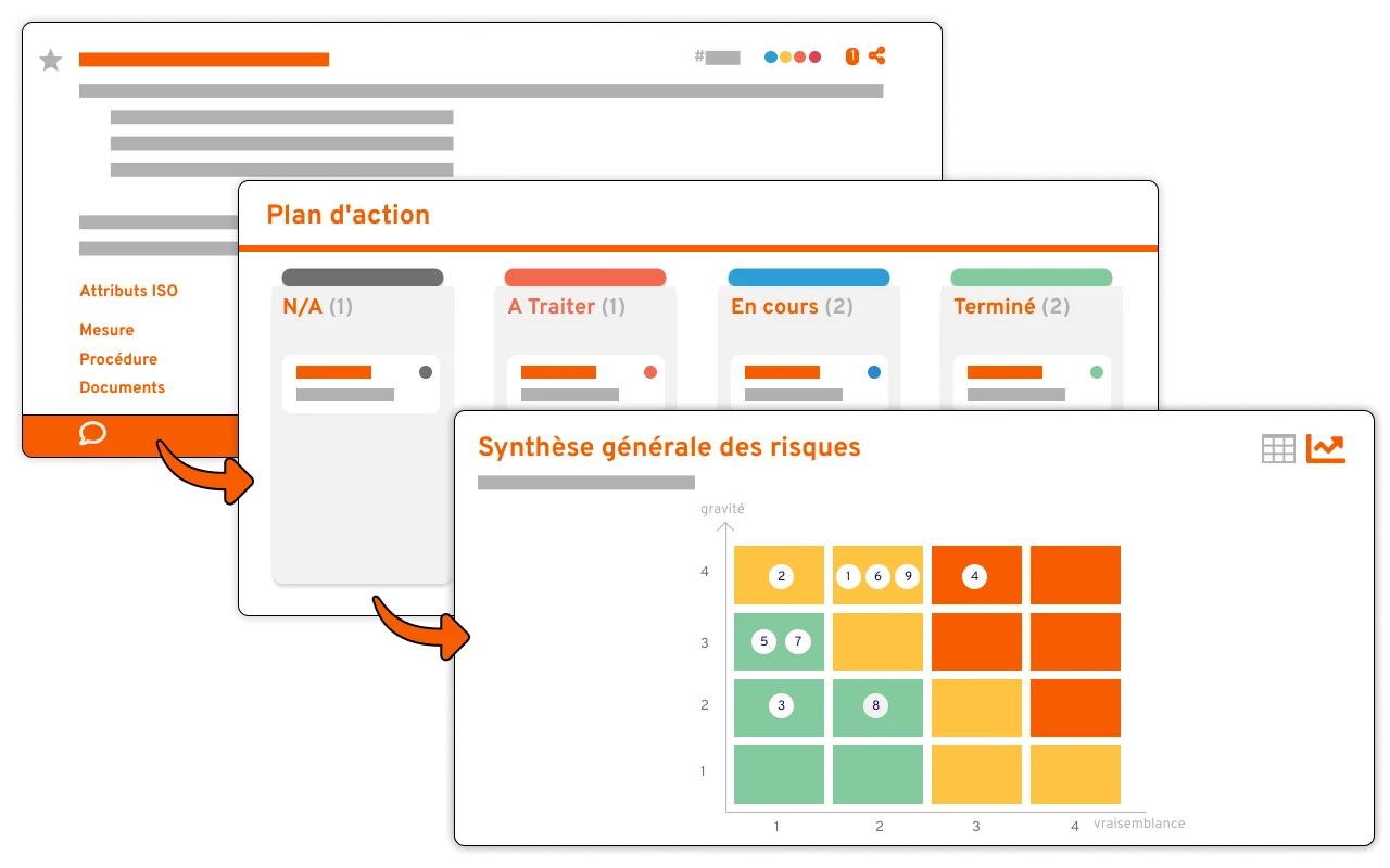 Créez des plans d'action en un clic, attribuez efficacement les responsabilités aux équipes appropriées, et centralisez vos rapports pour une gestion plus fluide.