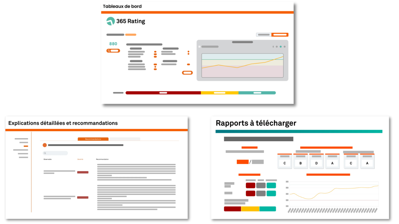 365 Rating® analyse en profondeur les trois composantes critiques de votre environnement Microsoft 365 :